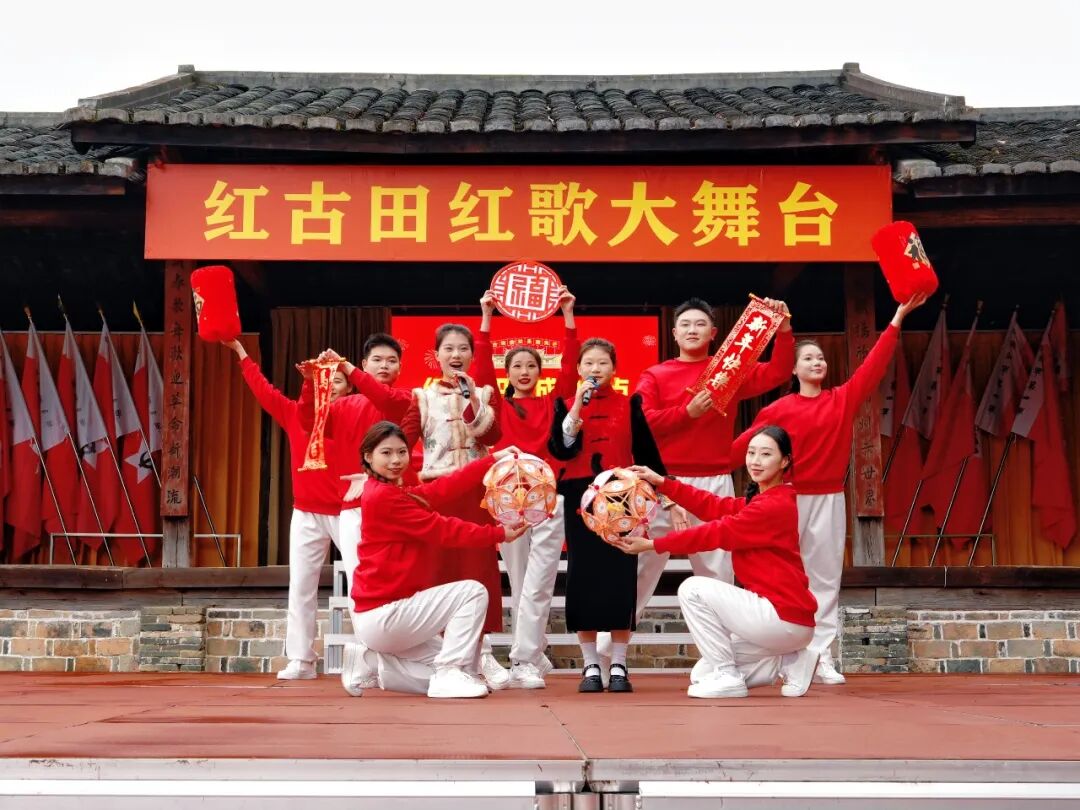 会址旁的红歌大舞台上,一首首振奋人心的经典红歌轮番唱响,不少游客被歌声吸引,情不自禁地挥动手中的国旗,融入这热闹的氛围中。歌声、掌声、欢笑声交织在一起,将新春的祝福洒满这片红色热土。