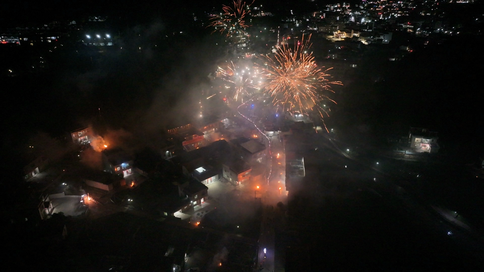 巡游队伍中,表演者灵活操控龙头,时而昂首摇摆,俯身吐火,灵动非凡。巨龙引领着300多盏形态各异的花灯,宛如一条光的长龙,蜿蜒穿梭于南阳的街巷之间。花灯队伍所到之处,锣鼓喧天,欢声雷动。沿途村民早已备好烟花炮竹,大家尽情释放着对新一年顺遂安康的祈愿。这场视觉与文化的双重盛宴,吸引了众多本地居民和外地游客前来观赏。