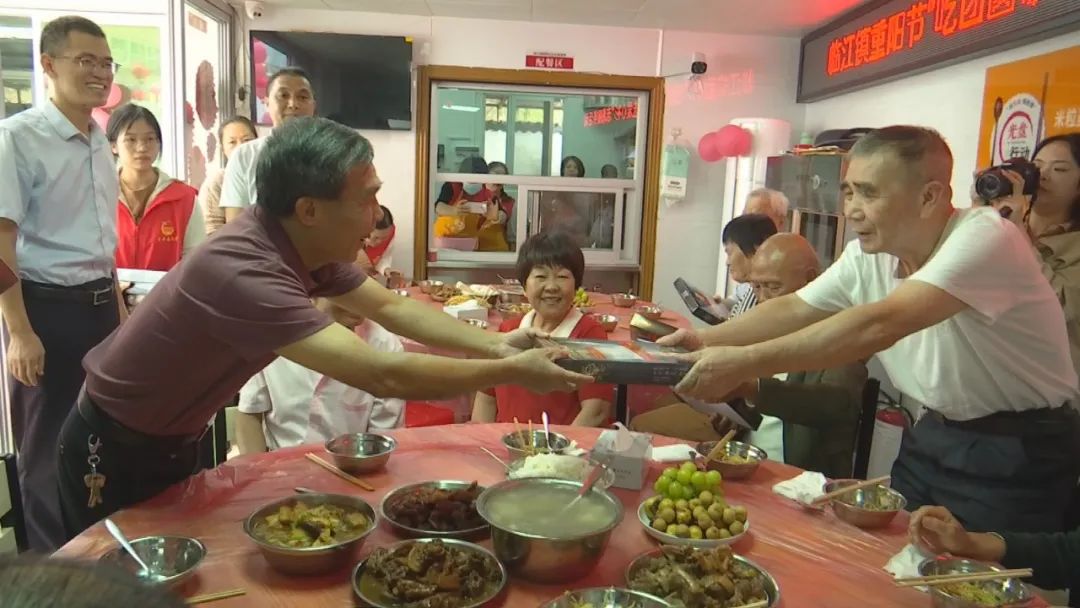 10月11日,临江镇为空巢老人举办“吃团圆饭·送爱心衫”志愿服务活动,为老年人带去温暖,增强老年人的幸福感。