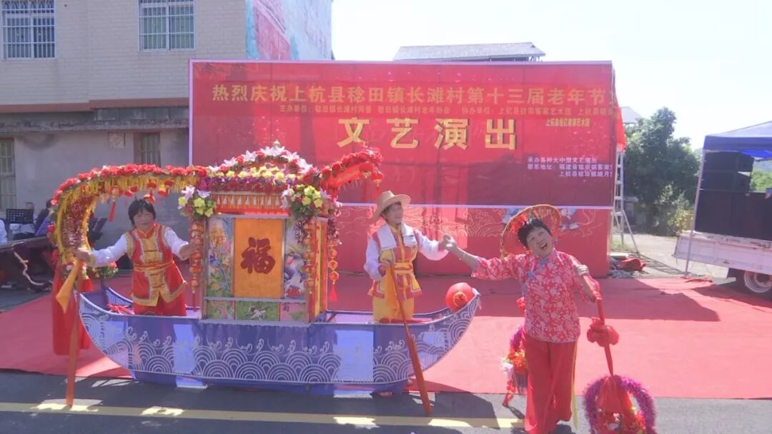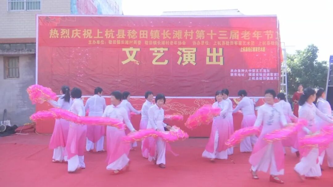 【稔田镇长滩村老年协会会长 李添长:在今天这个美好的日子里,我们长滩村的村民用载歌载舞的形式来庆祝重阳,同时讴歌党的移民好政策,使我们全村村民安居乐业、生活幸福、老人长寿。】(记者:李纪涛)