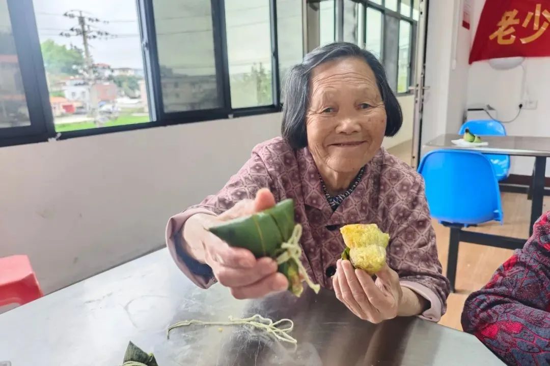 制作完成后,志愿者们为幸福院的老人们送上了热腾腾的粽子和咸肉粥,老人们的脸上洋溢着幸福的笑容,整个幸福院充满着温馨和欢乐。
