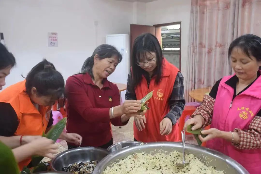 6月4日,溪口镇妇联联合文明办、社工站、团委、新时代文明实践所等部门在当丰村长者食堂开展“浓情端午,‘粽’享欢乐”端午活动。