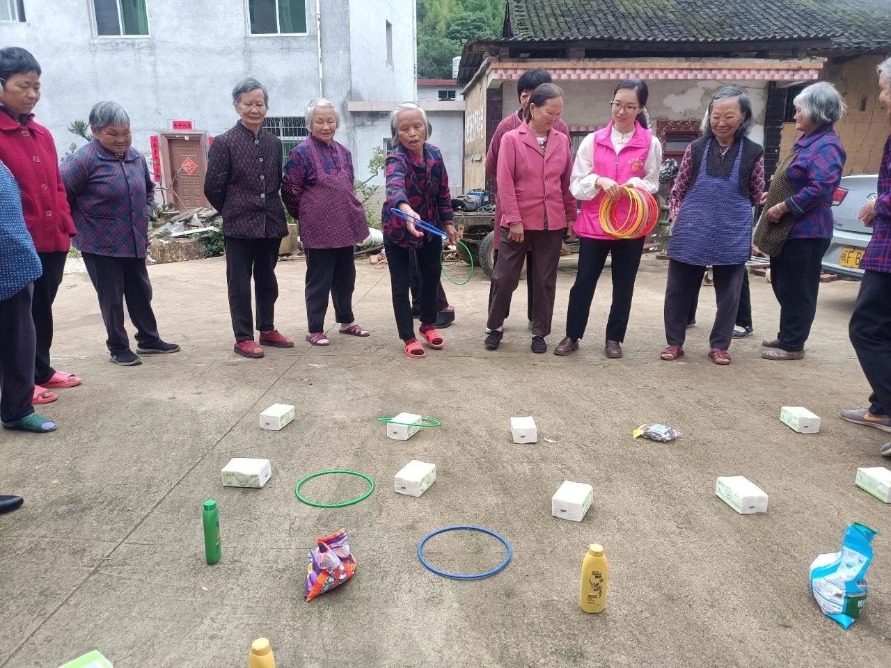 现场还进行集体趣味活动,志愿者们将礼品摆在地上规范的位置,再把游戏用的套圈依次分发给各位老人并介绍了游戏规则,老人们跃跃欲试,个个精神饱满,依次排队进行套圈,在围观群众的欢呼声中,有的一圈套中,有的多次尝试才套中,也有的与物品擦肩而过,还有的村民是实力派,直奔大奖而去,现场不时传来阵阵欢笑声和欢呼声。(上杭县融媒体中心综合)
