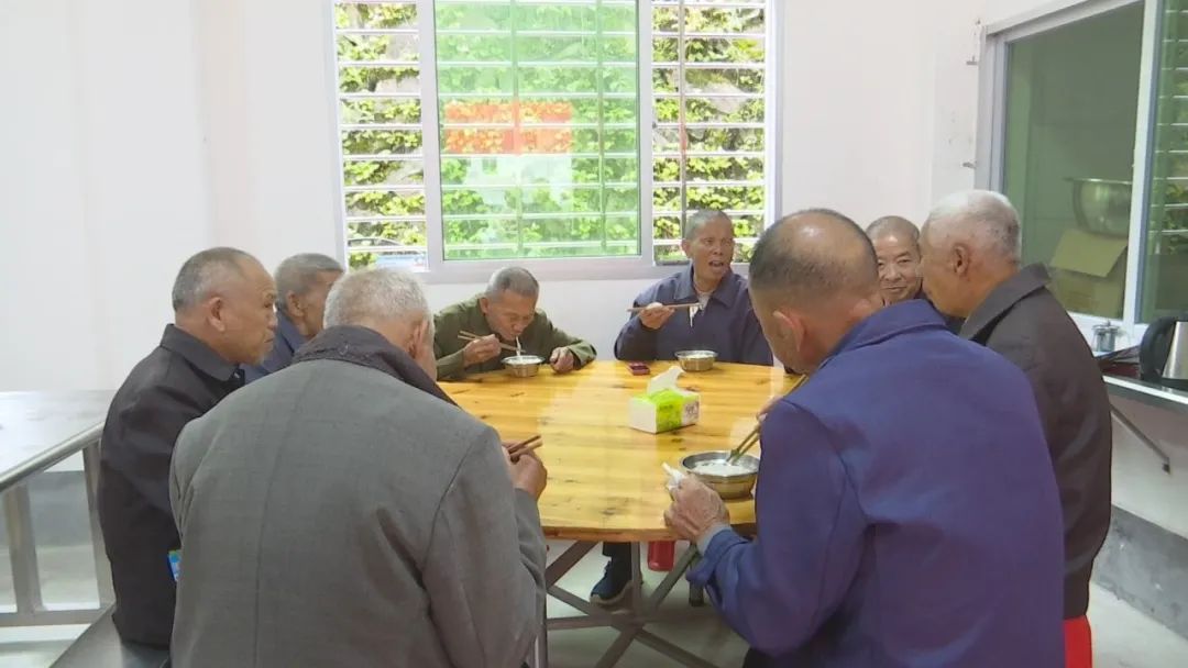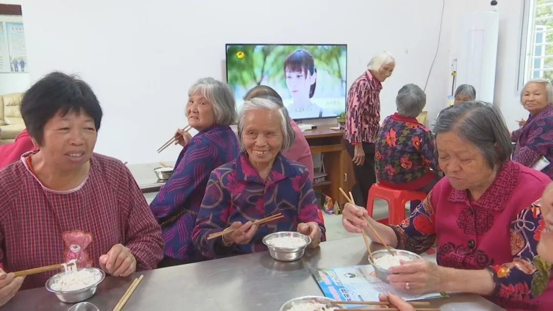 【溪口镇当丰村村民 龚福梅:我们老人家觉得办这个幸福院很好,每天在这边吃饭,又便宜又方便又好吃,营养又很高,我们在这边很快乐,吃完饭以后大家一起看报纸,活动一下。】