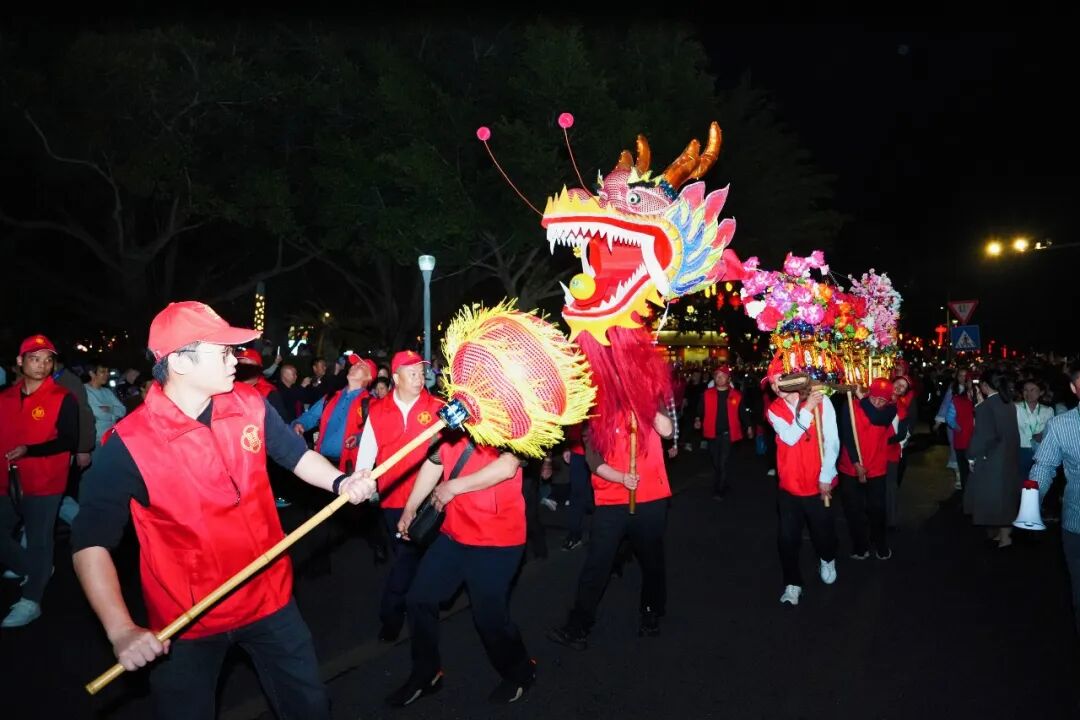 巡游队伍沿着既定路线蜿蜒前行,从县政府出发,经北大路行至老电影院,而后转入繁华的建设路,经人民路、和平路,穿过烟火气浓郁的东门市场,最终沿着江滨路返回县政府。沿街店铺纷纷敞开大门,商家与居民驻足观赏,不少人举起手机记录这壮观的一幕。