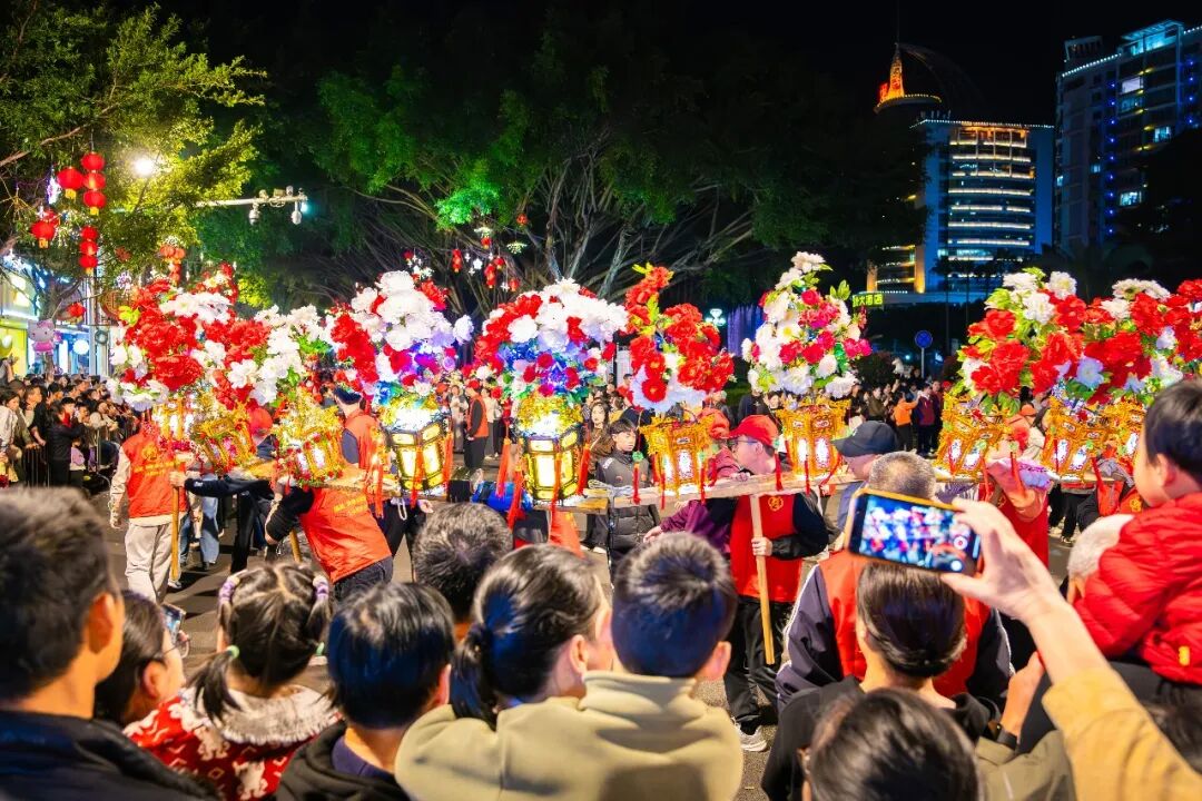 【上杭南阳花灯巡游参与者 曹淦: 南阳花灯也叫“风灯”,分桶子灯、瓶子灯两种,是我们老祖宗传下来的宝贝。今年我们组织了200多人的队伍,就是希望通过这样大型的巡游,让更多人看见非遗、记住非遗,让古老的民俗在新时代活起来、传下去。这不仅是灯的巡游,更是根脉的延续,寄托着大家祈盼国泰民安、风调雨顺、生活红火的美好愿望。】(记者:陈丽媛 黄大伟 张锐畅 张聪聪)