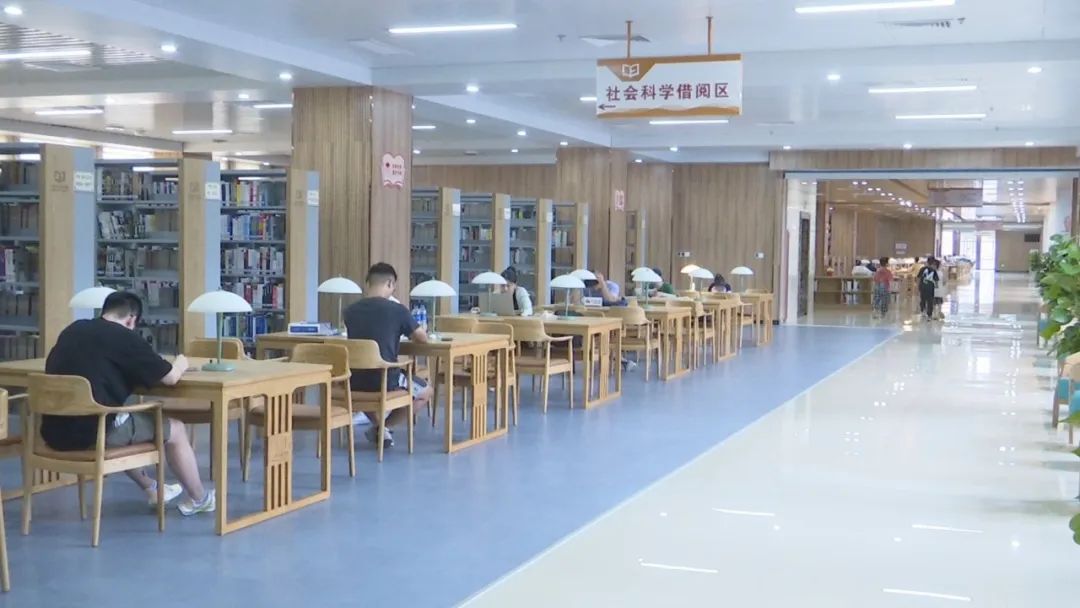 【读者 梁女士:新图书馆位置跟环境我觉得都是很好,这里也有空调,很凉快,那我在这里的话主要是学习,学习比家里效率会比较高。】