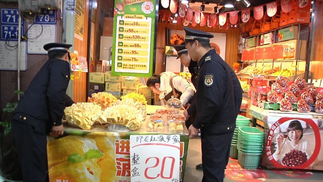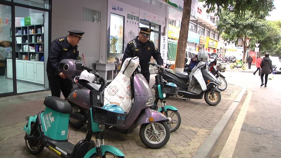 【县城市管理局城建监察大队市容中队中队长助理 范卫刚:因春节期间流动摊点店外经营和店外乱堆的现象突出,为尽快恢复城市市容常态管理,我局城市监察大队对和平路、金岗山路等主要路段开展春节后市容市貌整治行动,确保节后市容美观,环境整洁,和谐有序。】