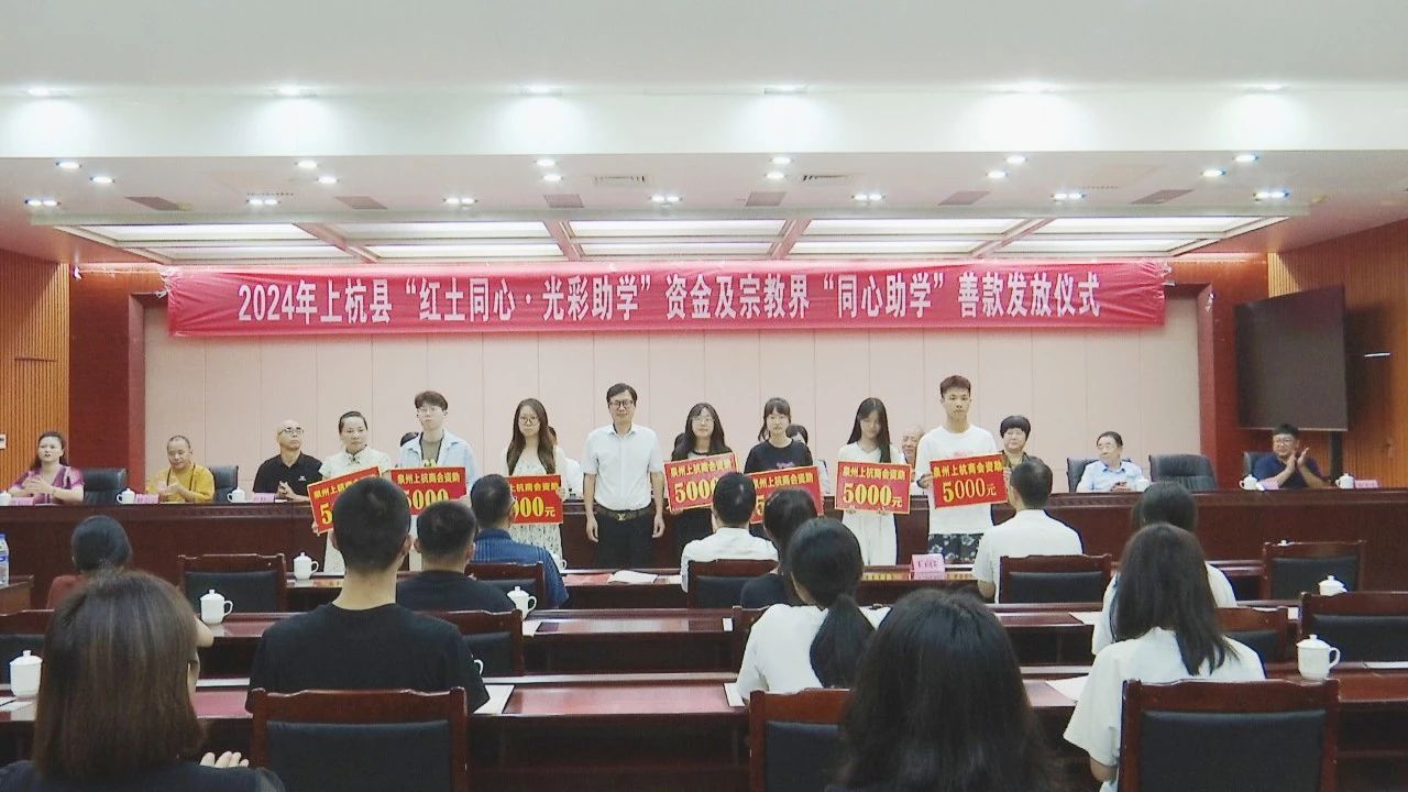8月22日,我县举办2024年上杭县“红土同心・光彩助学”资金及宗教界“同心助学”善款发放仪式,为96名学生发放了34.2万元资助款。县委常委、统战部部长郭夏媛,县政协副主席蓝春金参加仪式。