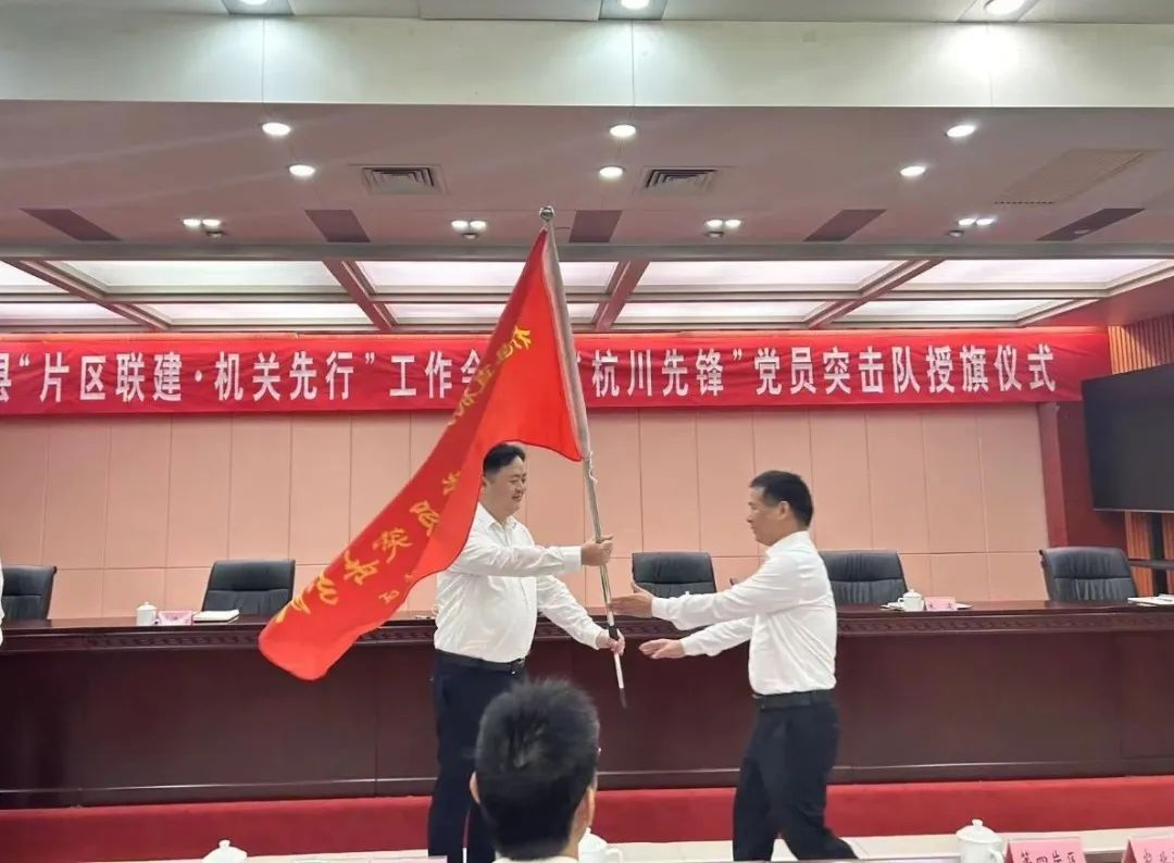会议解读了《关于建立“片区联建·机关先行”工作制度》并为“杭川先锋”党员突击队授旗,产业链赋能党建工作片区作为片长单位代表、党员突击队队员代表全体突击队队员进行了发言。(记者:李新元 通讯员:梁灵燕)