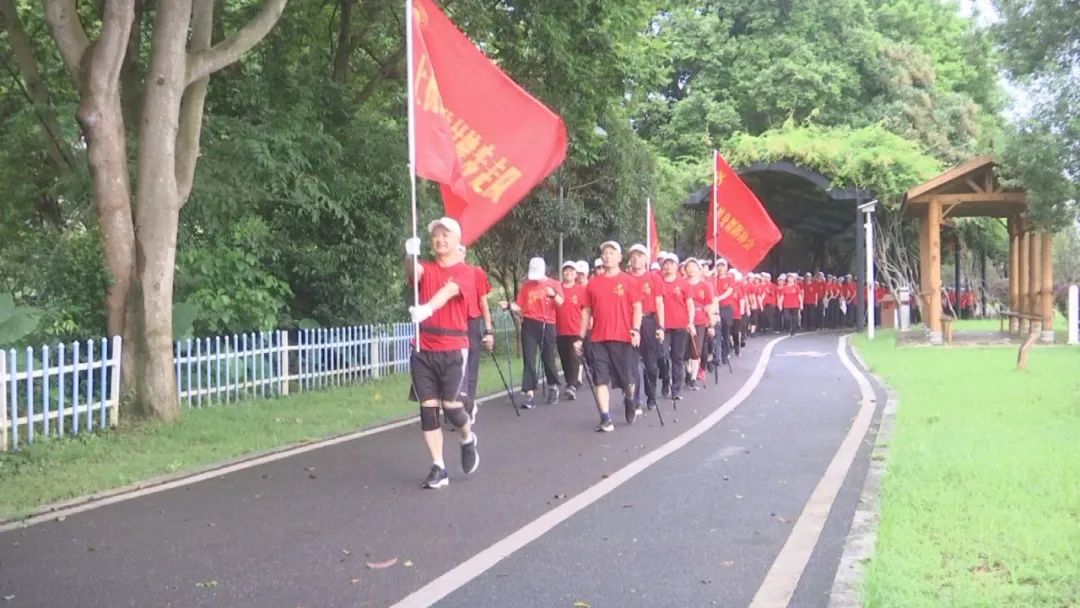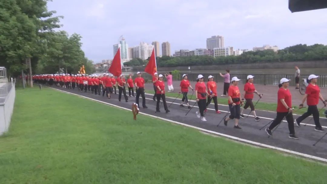 7时30分活动正式开始,参与者中既有年过七旬的老者,也有中年健身爱好者,大家沿着美丽的汀江绿道有序前行。