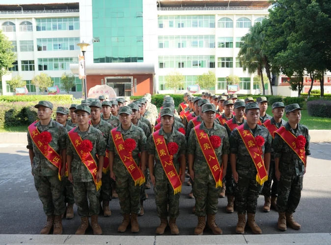 一大早,新兵就已经整装待发,他们身着迷彩,胸前佩戴着鲜艳的大红花,肩上披挂着“光荣入伍”的绶带,精神抖擞、斗志昂扬,展现出对未来军旅生涯的无限憧憬与豪情壮志。