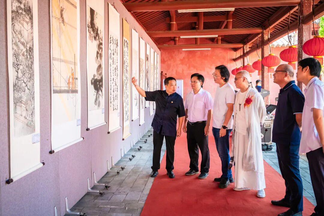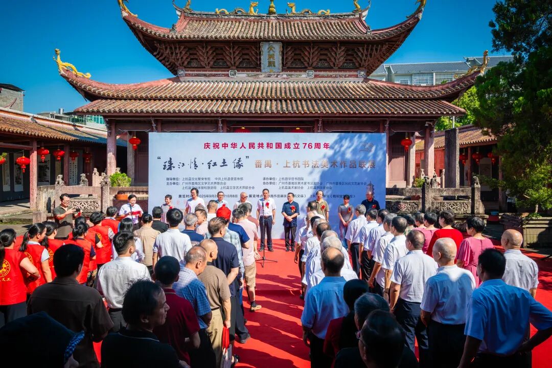 9月28日上午,庆祝中华人民共和国成立76周年“珠江情 红土缘”番禺·上杭书法美术作品联展在上杭文庙拉开帷幕。广东省文艺志愿者协会副主席、广州市民间文艺家协会主席何志丰,广东省美术家协会会员、悲鸿国际美育南方书画院执行院长、广州市番禺区文联委员王文峰,上杭县政协主席王尧华等出席活动。