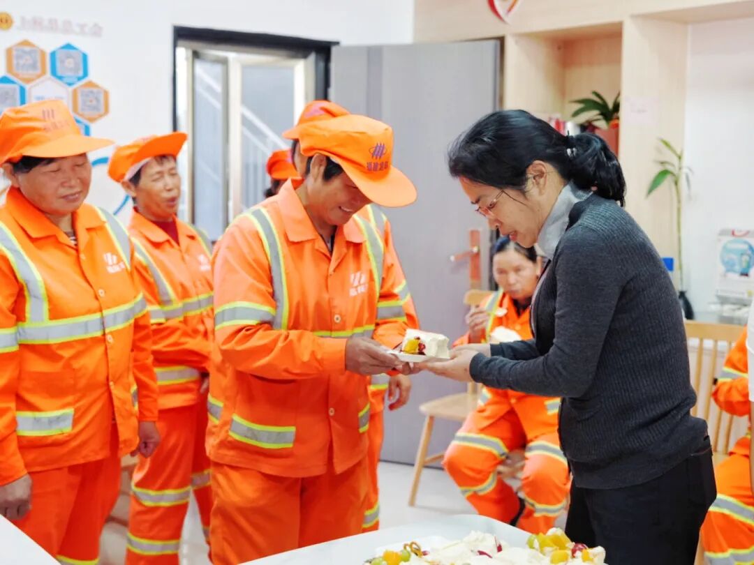除广场集中慰问外,工作人员还走进位于和平路的暖新驿站,为环卫职工们准备了节日蛋糕。大家齐聚一堂,共享喜悦,驿站内洋溢着欢声笑语。活动还组织走访了多户困难环卫职工家庭,并送上“微心愿”暖心物资,传递社会各界的关怀与温暖。此次暖心活动弘扬了“劳动最光荣”的时代风尚,进一步激发了广大环卫职工的工作热情,为推进美丽上杭建设凝聚了正能量。