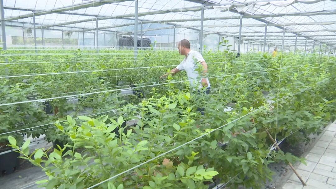 近日,在才溪镇溪北村智慧果蔬基地的大棚里,一盆盆嫩绿的蓝莓树已经到了花芽分化期。部分蓝莓树上,洁白如雪的花朵已悄然绽放。