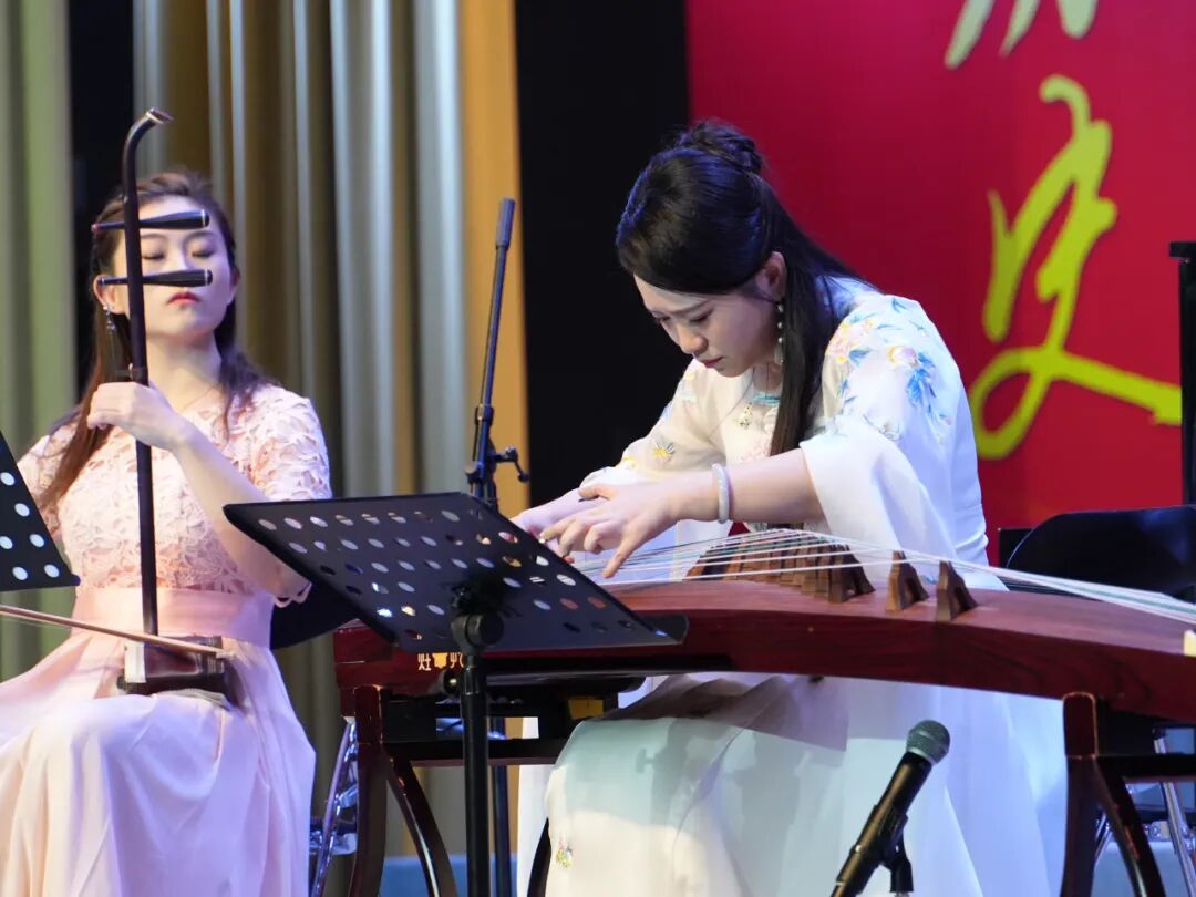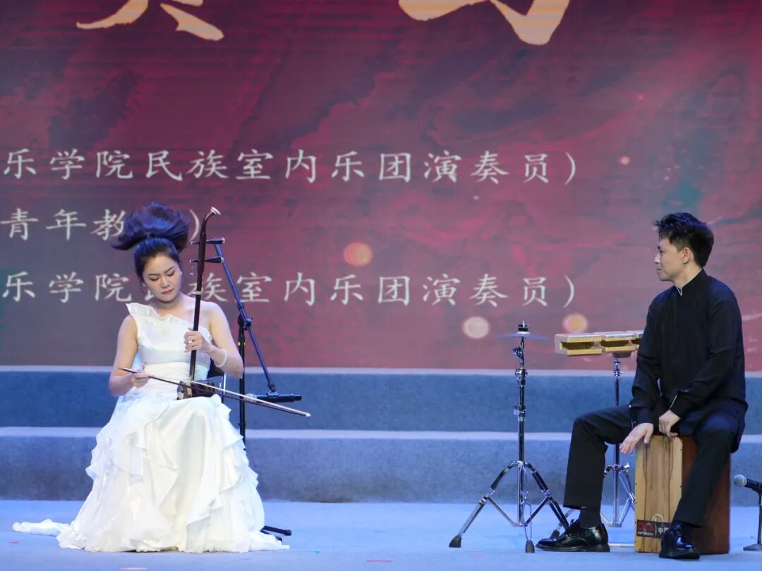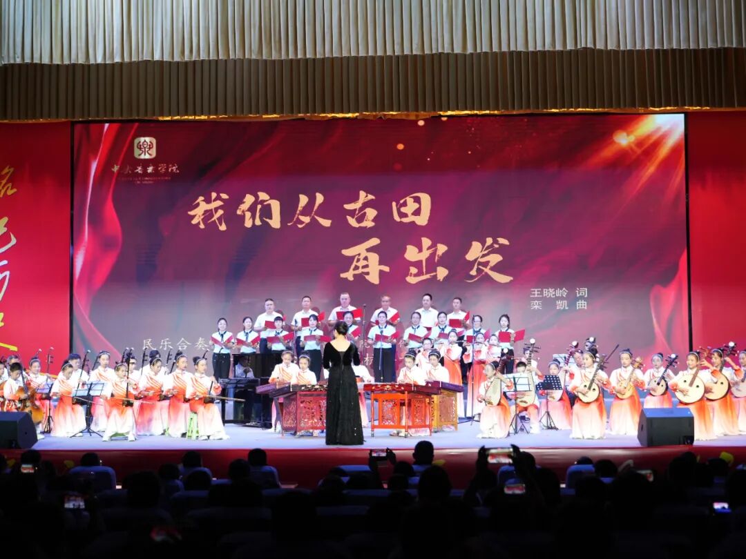 音乐会在激昂的民乐合奏《我们从古田再出发》中拉开序幕,以音乐传承红色基因,彰显时代精神。随后,竹笛独奏《双喜临门》、民族声乐《春风十万里》、手风琴《持续低音》、经典琵琶曲《春江花月夜》、小提琴《丰收渔歌》、民族打击乐《龙腾虎跃》、二重唱《父亲的草原母亲的河》等精彩节目轮番上演,整场演出既有二胡、琵琶、竹笛、古筝等中国传统乐器的齐奏、独奏,又有男女声独唱、二重唱、合唱,既有欢快灵动,又有悠扬深情,不同种类、不同风格的节目展现了多元的音乐风格,让在场的观众沉醉。最后,全场齐声高唱《我和我的祖国》,歌声激昂,为音乐会画上圆满句号。