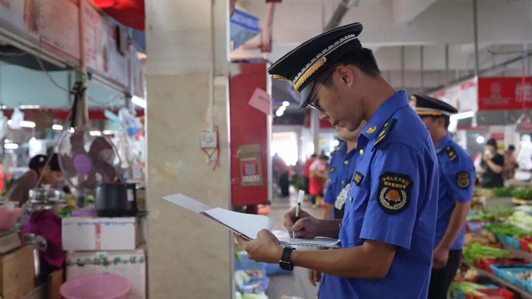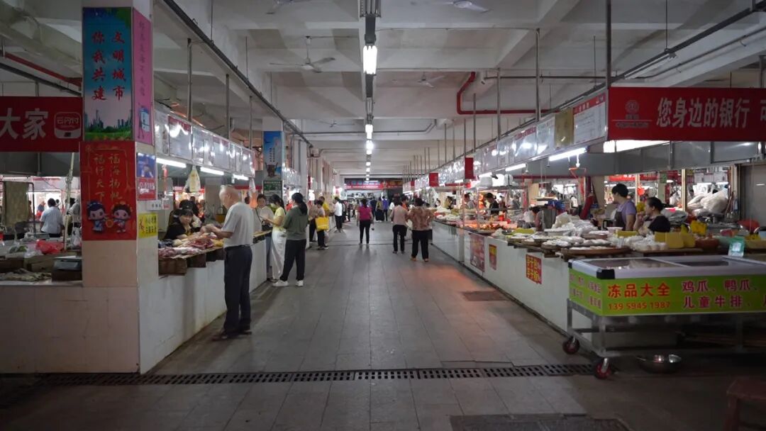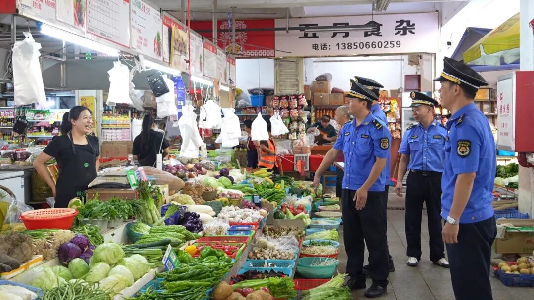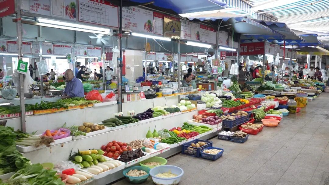 近日,在城区东门农贸市场,蔬菜区、肉类区、水产区等功能分区清晰明了,摊位整齐划一,地面干净整洁。经营户们正热情地向顾客介绍商品、完成交易,与此同时,市场管理人员在市场内来回穿梭,仔细检查卫生状况、是否存在占道经营情况以及垃圾分类是否规范等问题。