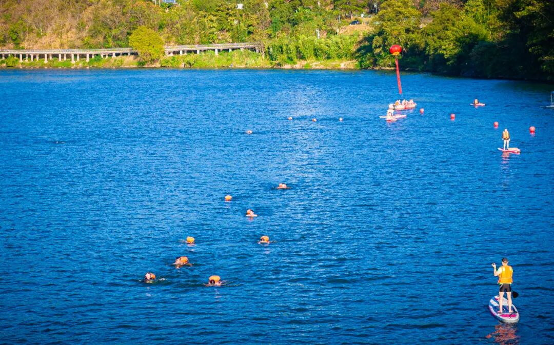 11月21日,“福籽同心爱中华”2025年杭台(上杭汀江)公开水域游泳邀请赛,在上杭县汀江浴场精彩开赛。来自台湾、泉州、漳州、三明等地的370余名游泳爱好者在汀江水域奋勇争先、劈波斩浪,展开精彩激烈的水上角逐。