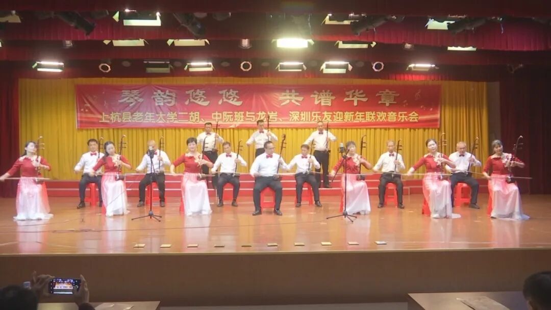 本次音乐会汇集了上杭老年大学二胡班、中阮班、龙岩市老年大学二胡学会以及深圳市二胡协会等多方乐友。三地乐友同台献艺,既有《满堂红》《喜洋洋》等喜庆欢腾的二胡合奏,也有《平湖》《小蜜蜂》等融合二胡、中阮、月琴的民乐节目。现场还呈现了二胡独奏《野蜂追马》、二人奏《战马奔腾》等技艺精湛的曲目,十二个节目各具韵味,赢得了观众的阵阵掌声。