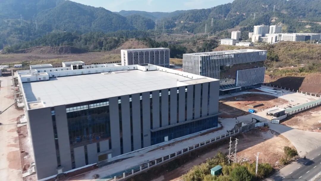 项目现场,多幢现代化厂房及配套建筑已拔地而起,主体结构全部封顶,外立面装饰工程基本完成,整体建筑群轮廓清晰、气势恢宏。工人们正紧锣密鼓地进行观景平台及室外附属设施的施工,现场井然有序。