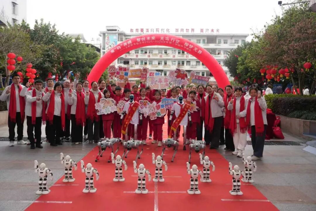 3月6日,开学第一天,县实验小学迎来了一群“特殊同学”——会挥手的人形机器人和机灵的机器狗。一场以“策‘码’奔腾,智创未来 天马行空,探梦无界”为主题的开学典礼,把科技从荧屏搬到现实,让孩子们在零距离互动中感受科技魅力,在笑声与游戏中点燃探索热情。