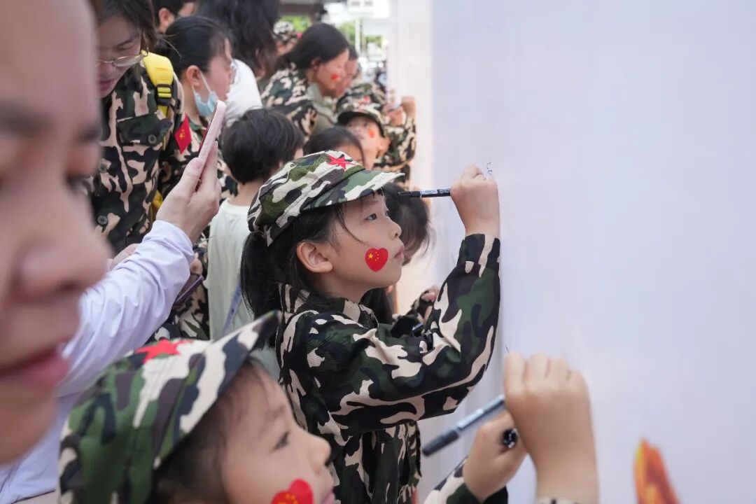 一路上,孩子们稚嫩的脚步坚定有力。终点在太忠庙前,他们踮起脚尖,一笔一画写下自己的名字。这一笔一画,不仅是对活动的纪念,更是对未来的承诺。身旁的家长们目光温柔,看着孩子们在坚持中磨砺意志,在行走中感悟历史,这份成长的喜悦溢于言表。