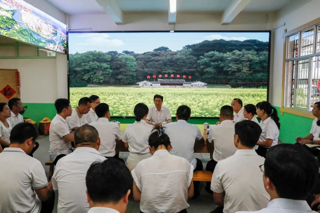 8月14日,市委书记余红胜深入上杭县古田镇上福村,向基层干部群众宣讲党的二十届三中全会精神,并根据我市2024年“人大代表联系月”活动安排,与所联系的上杭县人大代表座谈交流,实地察看古田镇乡土农业产品展销中心、预制菜展销中心和蓝家渡葡萄产业田园综合体项目。市委常委、秘书长廖深洪参加。