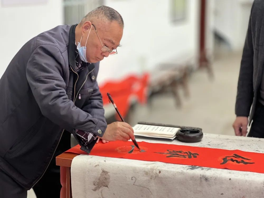 活动现场,书法家挥毫泼墨,写下一幅幅红彤彤的春联和一句句吉祥如意的祝福语,向群众朋友们致以节日的问候和新春的祝福,不仅增添了浓浓的年味,更激起了广大群众对过好春节传统节日的热情。