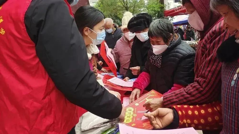 此外,通贤镇新时代文明实践所组织志愿者利用年前最后一个通贤圩向群众发放“贤”“福”宣传品,做时代新风的传播者,向大家宣讲传统中国年习俗和通贤“贤”“福”文化,把新春佳节的美好祝福送进千家万户,营造了欢乐喜庆、文明祥和的节日氛围。(通贤镇供稿)