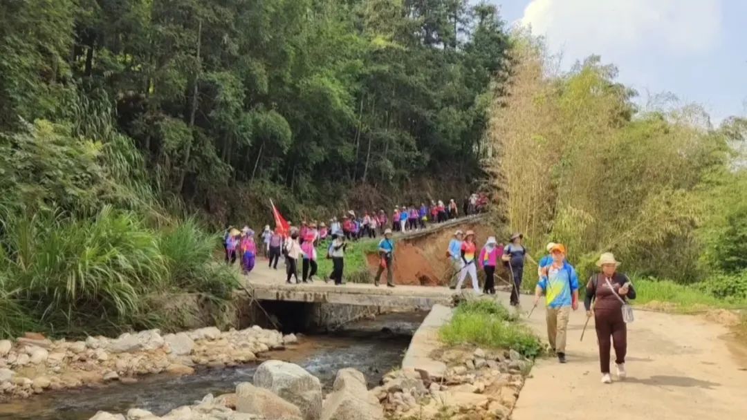 正值周末,来自新罗、永定、武平,广东梅州、蕉岭共8支户外团队约300名驴友在溪口镇大连村开展户外徒步活动。溪口的红色文化、山水美景、风土人情给远道而来的驴友们留下深刻印象。
