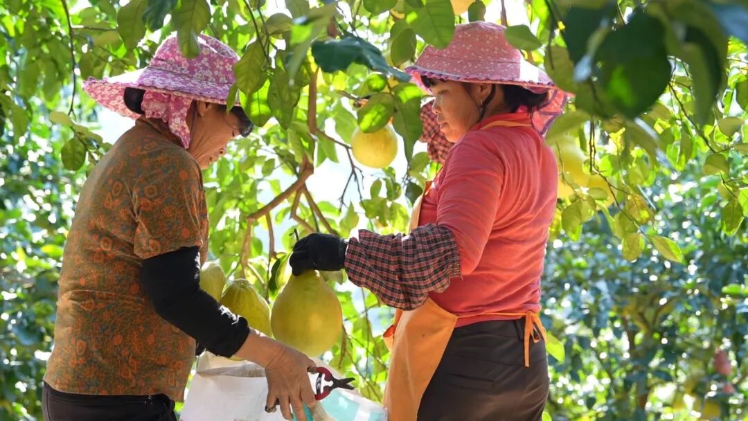 近年来,下都镇象栏村通过推广标准化种植技术,大力发展沙田柚特色产业,形成一村一品。目前全村种植柚果农户168户,沙田柚种植面积1400多亩,年产柚果超1100万斤。小小沙田柚,已成为当地群众增收致富的“黄金果”。(记者:陈丽媛 通讯员:蓝佳萱 范欣平)
