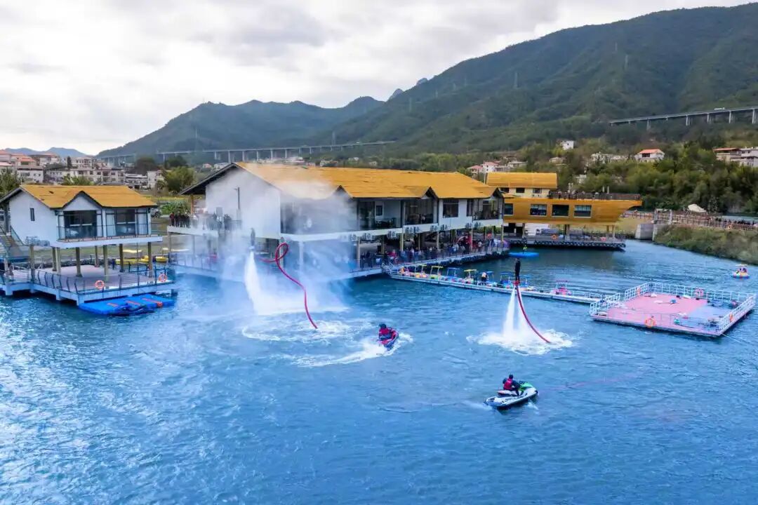 1月2日,旧县镇铁东村湾月湖景区内水花飞溅、表演精彩,引来游客纷纷驻足拍摄。元旦期间,不少家庭选择来到这里,带孩子体验乡村的悠闲节奏,共度亲子时光。