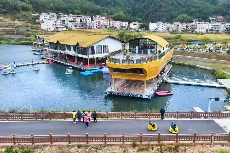 元旦假期,上杭县旧县镇铁东村湾月湖景区迎来一批批亲子游客。一场融合自然体验与亲子互动的文旅活动在此展开,欢声笑语中,游客们亲身感受乡村振兴的勃勃生机。