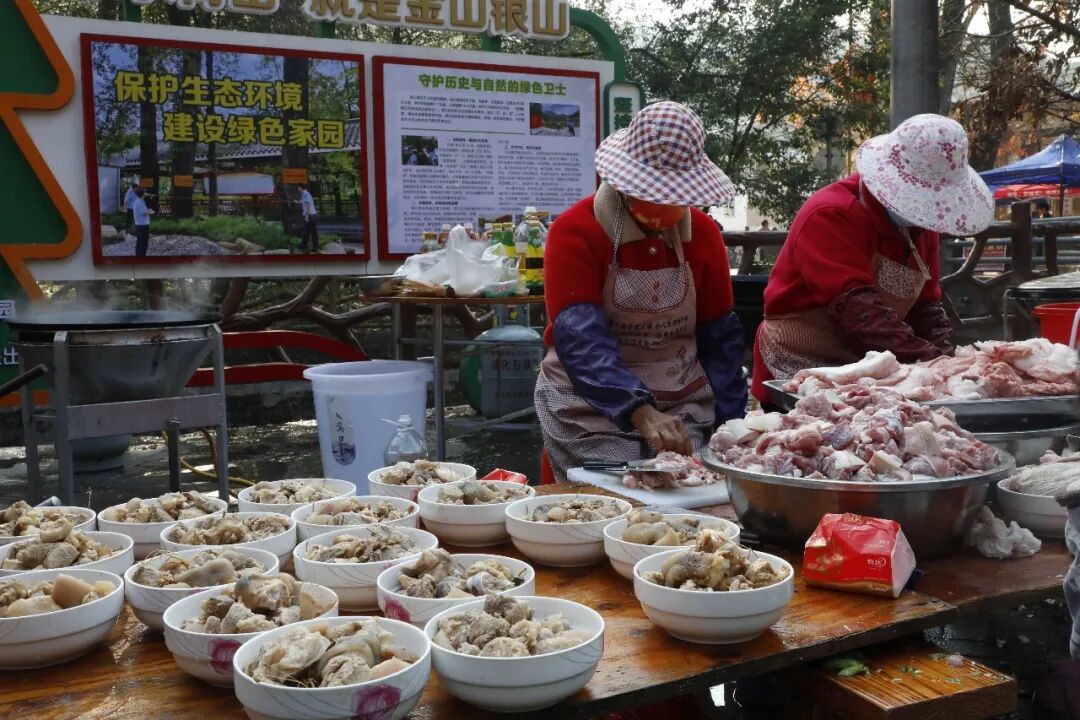 1月18日,上杭县溪口镇红色大连景区人声鼎沸、香气四溢,主题为“相约你走溪口·杀年猪泡温泉”的客家杀猪宴热闹开席,数百名游客齐聚一堂,在红色热土上感受最地道的客家年味。