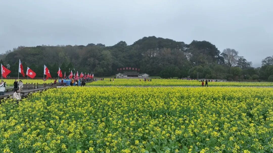 眼下正值油菜花盛花期,景区内不少家庭结伴出游、朋友相约同行,大家在赏花观景的同时,接受红色教育,度过惬意的春日时光。