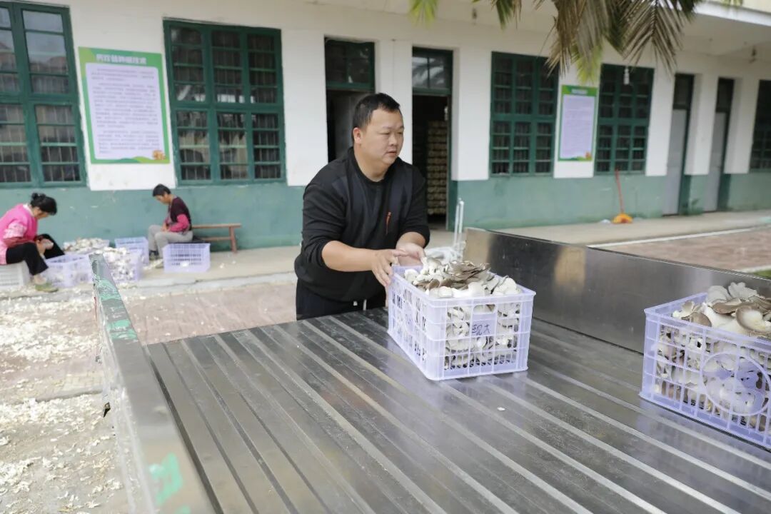 【菇农 游锦福:之前是一个小学,现在是一个闲置房,现在弄出来是六个菇房,大概种了两万个左右。一个菇房的话,就是每个月的产值是三千到四千左右。】