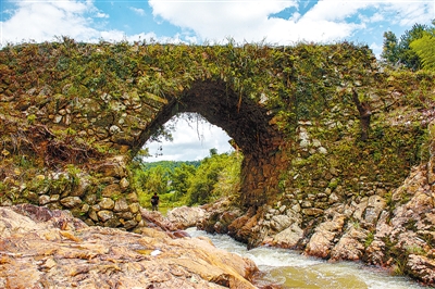 仙人桥位于上杭县临城镇上登村水尾,始建于明代,在著名的回龙阁右侧10米处。仙人桥为单孔石拱桥,桥拱为条石砌成,做工较为大气、粗犷,富有明代建筑特色,桥身通体为鹅卵石砌成,桥面中线为红砂岩条石砌成,很完整。桥底基座河床为红色花岗岩,经千百年河水的冲刷,形成许多深沟槽,桥底为一深潭。上游有石砌拦河坝以抵挡泥沙淤积和缓冲激流,为保护桥体起着很大作用,古桥、古塔,形成一道美丽风景。