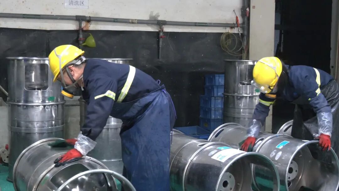 近日,记者走进福建省龙德新能源有限公司生产车间,工人正细致地清洗包装桶、检查产品质量,为产品出货做最后准备,全力保障按时、保质交付。