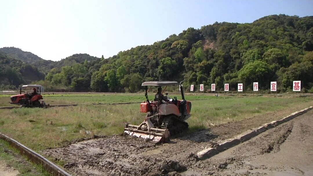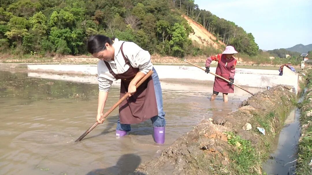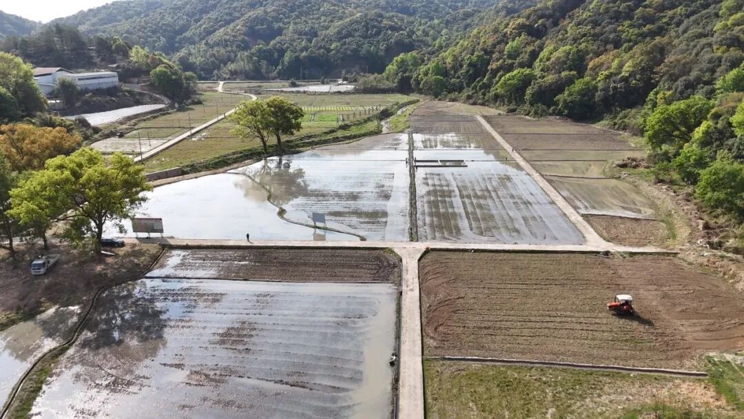【中都镇水稻种植大户 梁永英:我们的大田正由拖拉机作业翻地,对紫云英地进行第一遍翻耕,在插秧之前还会进行第二遍翻耕。在水田里,工人也在陆陆续续进场,做我们的田埂。今年我们把所有的田埂都用机器重新做了一遍,对田埂的保水固水这一块有很大的作用。】